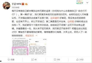 最近娱乐圈可是热闹非凡呢!这不,于正和卓伟这对娱乐圈的“狗仔”组合又爆出了大新闻,让人忍不住要一探究竟。今天,就让我带你一起揭开这层神秘的面纱,看看这次他们到底又挖出了哪些猛料!